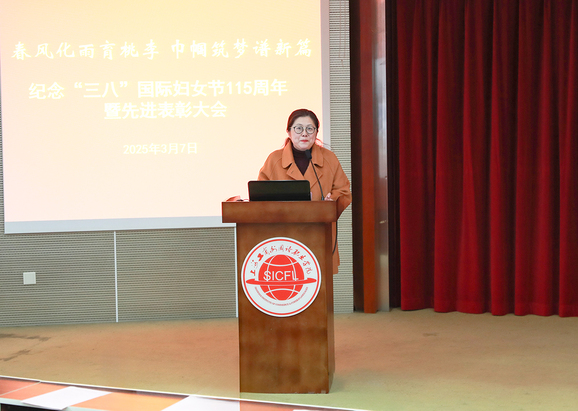 春风化雨育桃李 巾帼筑梦谱新篇。3月7日下午,学校在八号楼2楼报告厅召开纪念“三八”国际妇女节115周年暨先进表彰大会。相关校领导、校工会委员、女工委员、各工会小组负责人、中层干部(女)、各院(部)职能处室女教职工代表、获奖“三八红旗手”和 “三八红旗集体”代表等济济一堂,共同参加大会。大会由学校工会常务副主席、女工委主任傅敏娜主持。