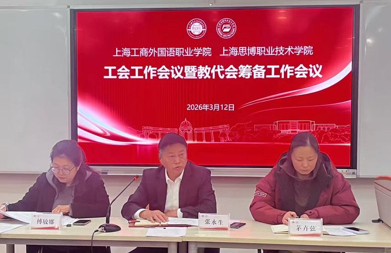 为做好两校“双代会”筹备工作,3月12日,上海工商外国语职业学院、上海思博职业技术学院工会工作会议暨“双代会”筹备工作会议在工商外四号楼1楼教工之家智慧教室召开。会议由思博学院工会常务副主席茅卉弦主持,两校工会委员、经审委委员、女工委委员及各分工会小组组长参加会议。